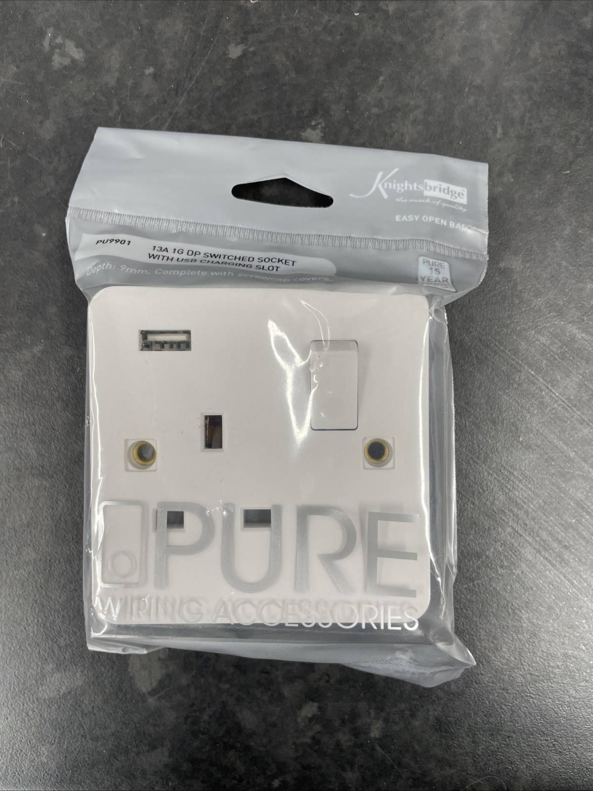 13A Single Gang Switched Plug Socket with USB Port Knightsbridge CU9903
