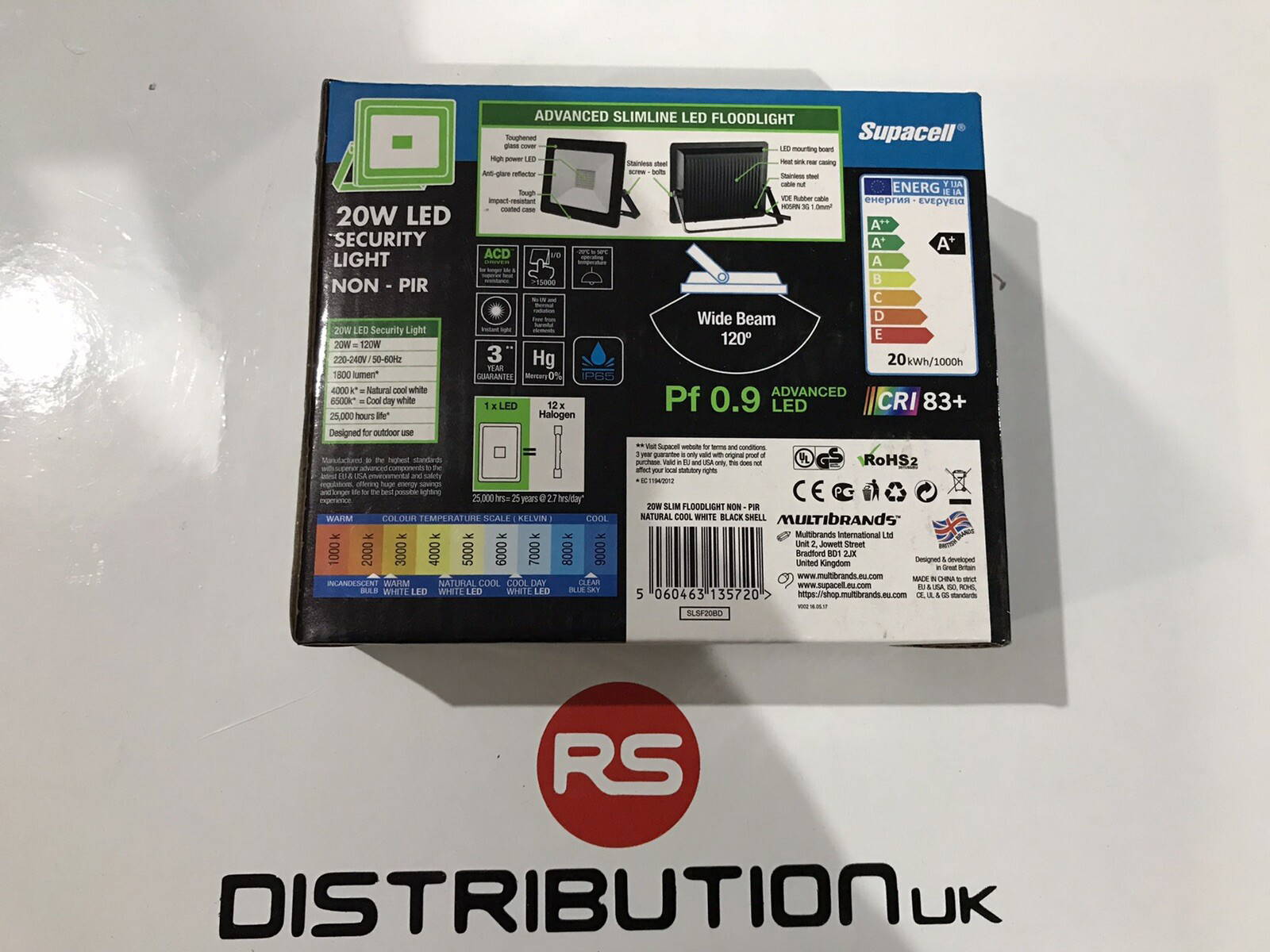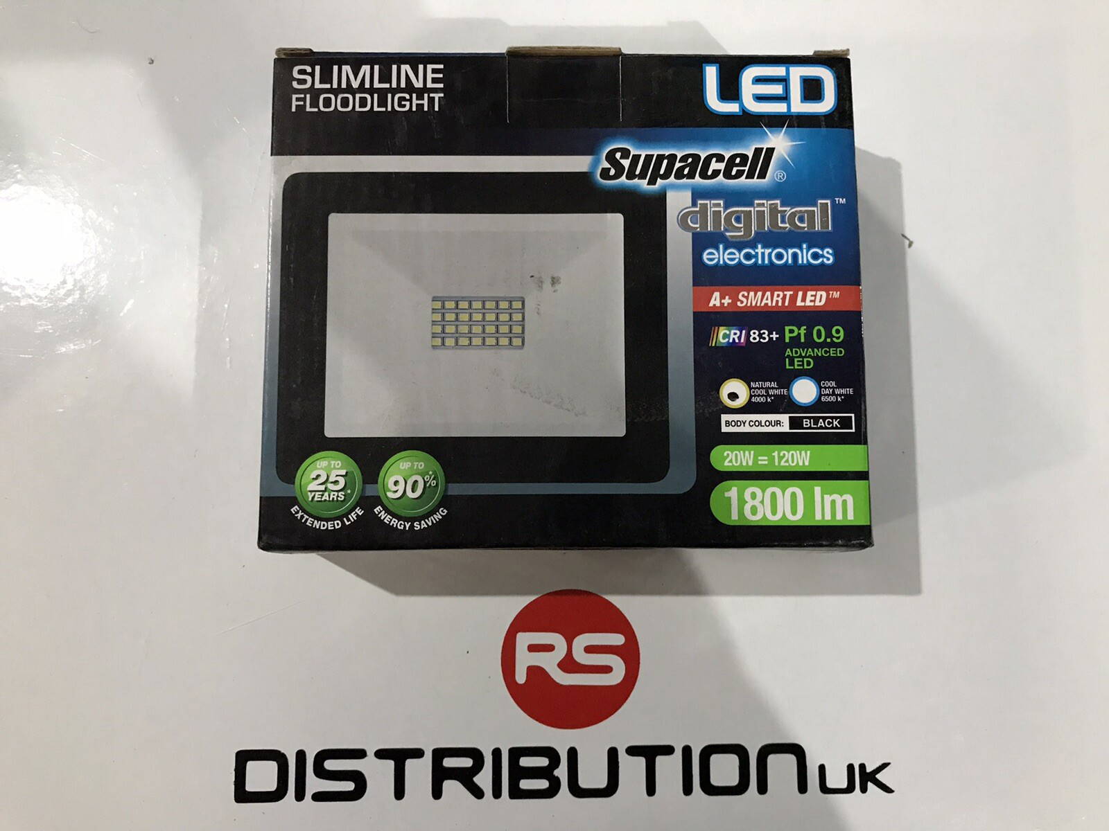 Advanced Slimline LED Flood Light Supacell Digital Electronics 20W/120W/1800 Lum.
