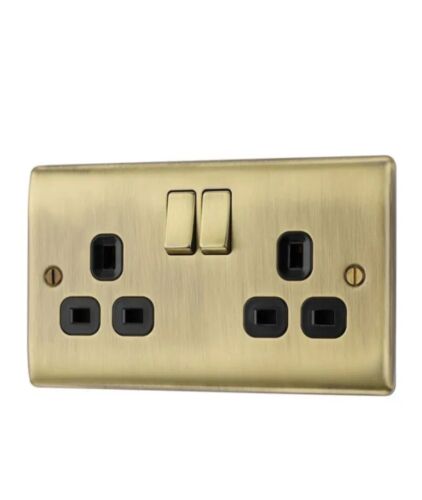 BG Nexus NAB22B Antique Brass Double Socket 2 Gang Twin 13 Amp Black Inserts