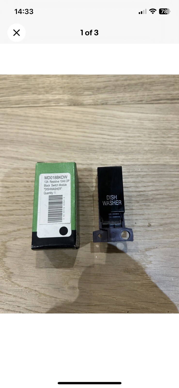 Click Minigrid MD018BKDW 13A 10AX Amp Double Pole Switch Module Dishwasher Black