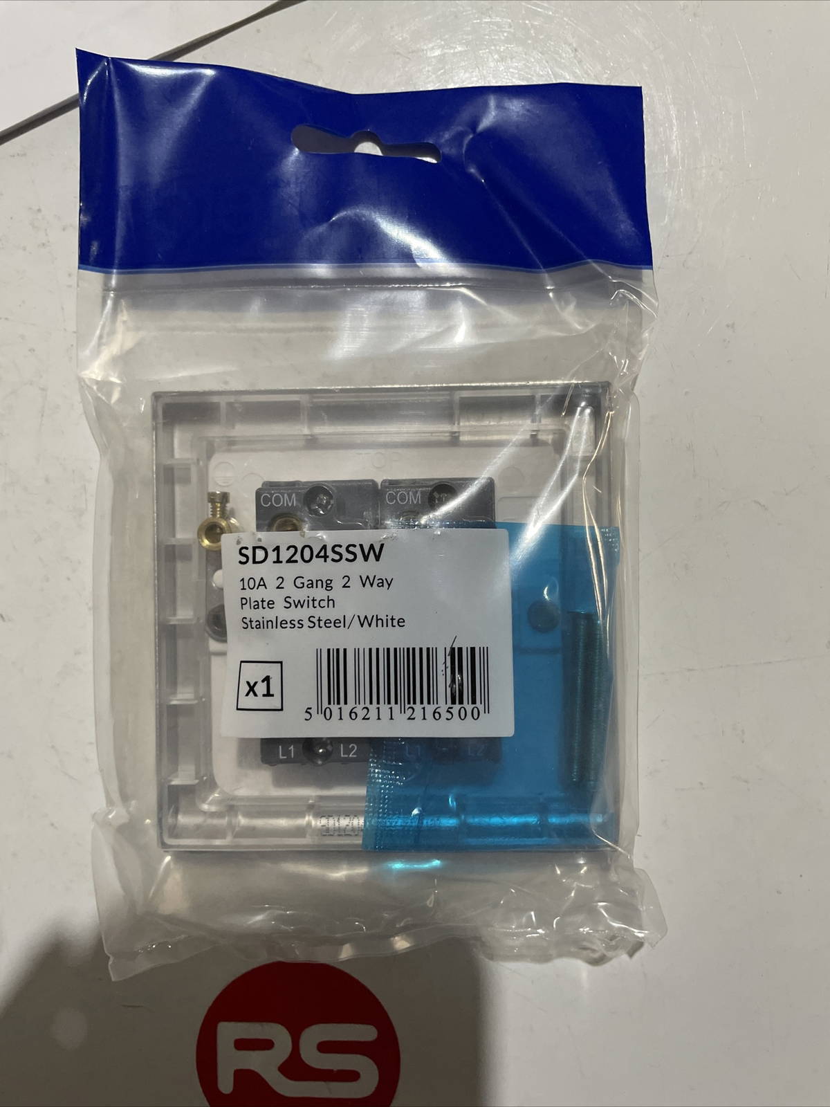 Deta SD1204SSW 10a 2 gang 2 way switch stainless steel/white.