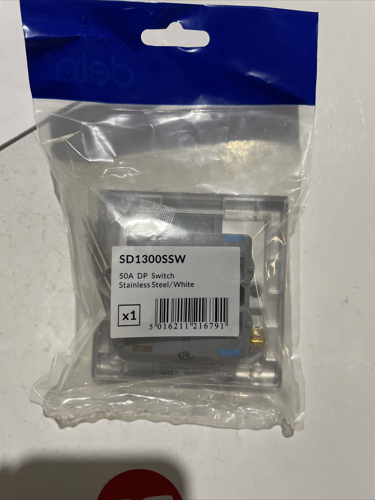 Deta SD1300SSW 50a double pole switch stainless steel/white.