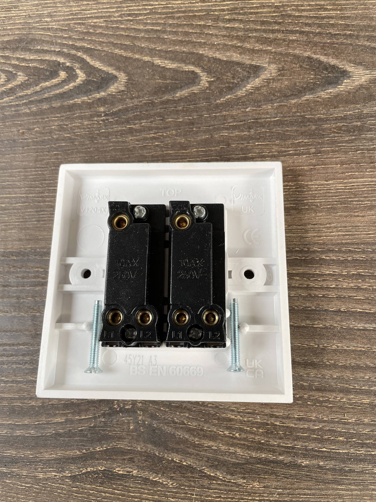 Deta Vimark V1204 2G 10A 10AX 2W Square Frame Plate Double Light Switch White