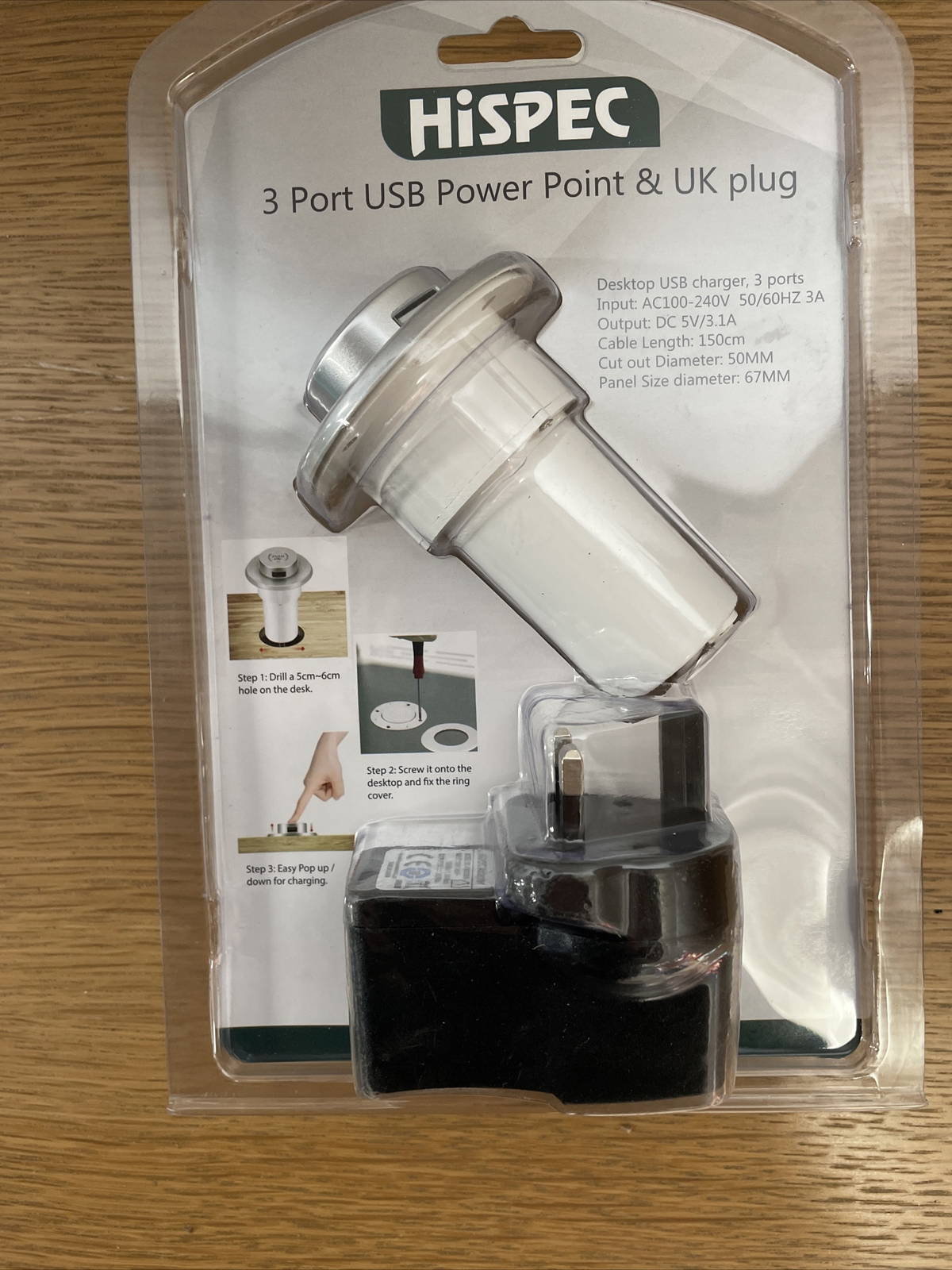 3-Port Power Point Desktop USB charger and UK plug Modern Pop-up Work