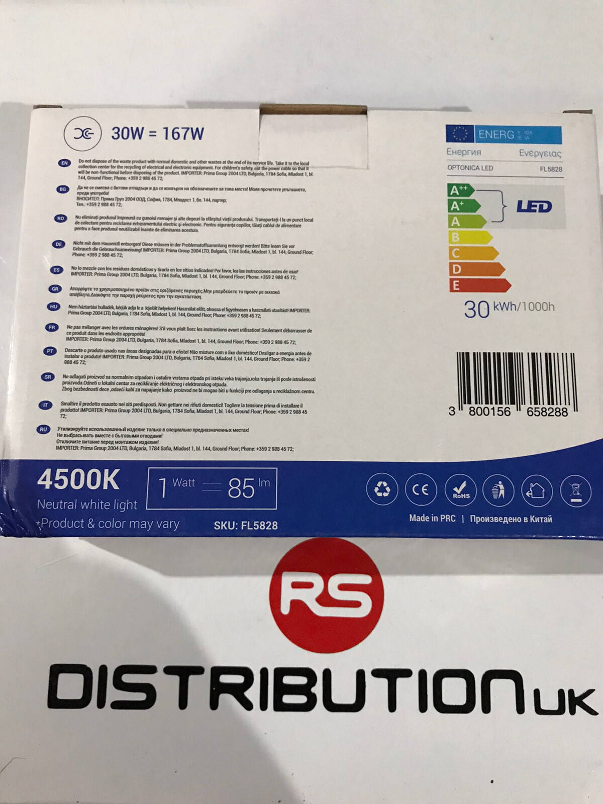 Optonica 30w LED Floodlight – 4500k / Neutral White Light – Black.