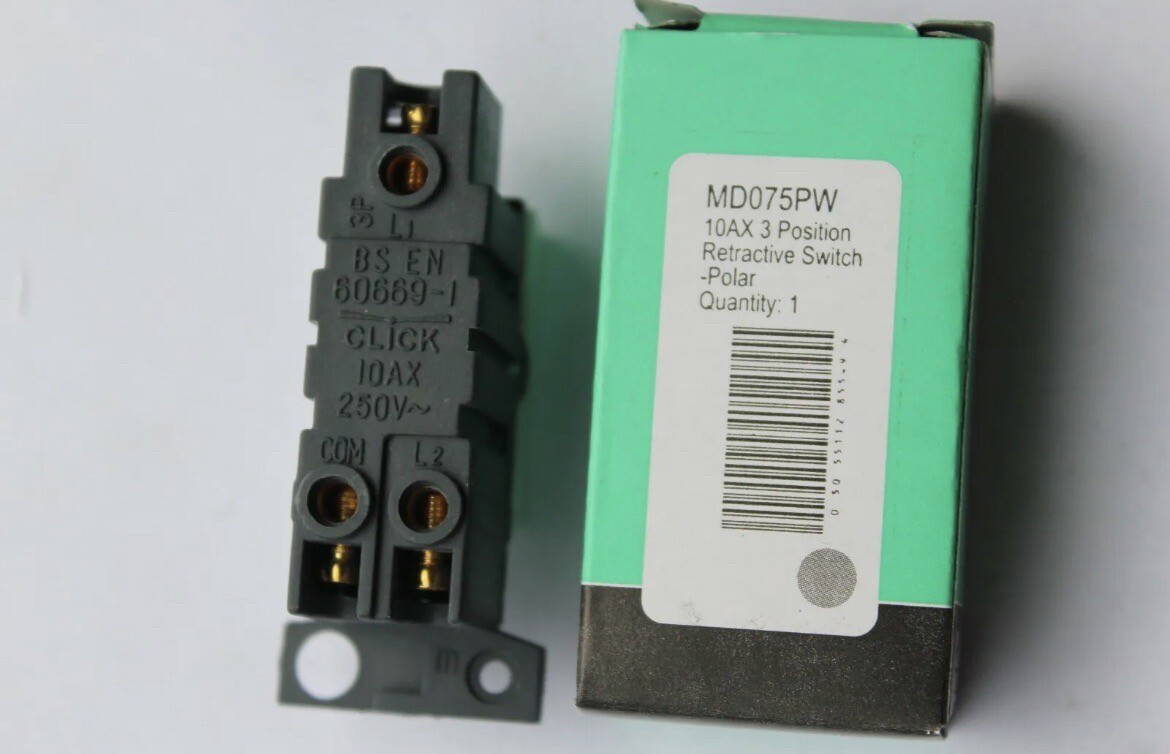Scolmore Click Minigrid MD075PW 10AX 3 position retractive switch Polar White