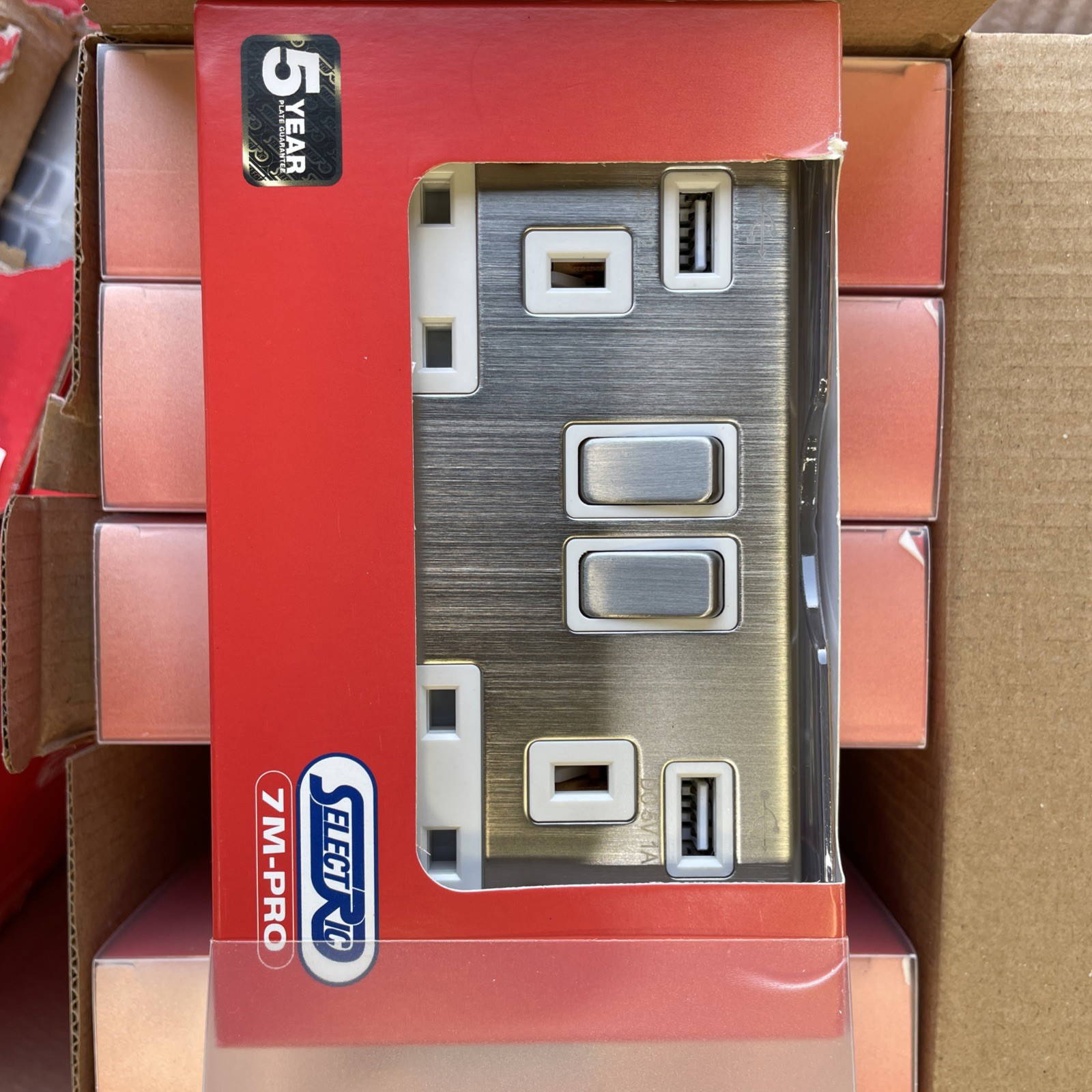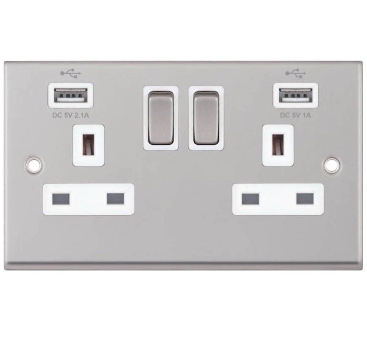 Selectric 7MPRO-161 Satin Chrome 2 Gang 13A Switched Socket USB