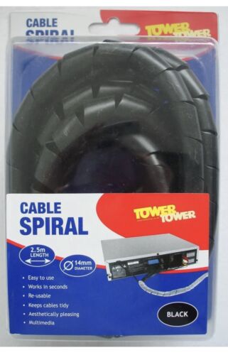 Introducing the Tower 2.5m 14mm Diameter Black Reusable Cable Spiral 530848. This high-quality cable spiral provides a convenient and tidy solution for managing cables in your workspace. Designed by leading brand Tower, this cable spiral has a sleek black finish and is reusable, making it an eco-friendly choice for your electrical equipment needs.