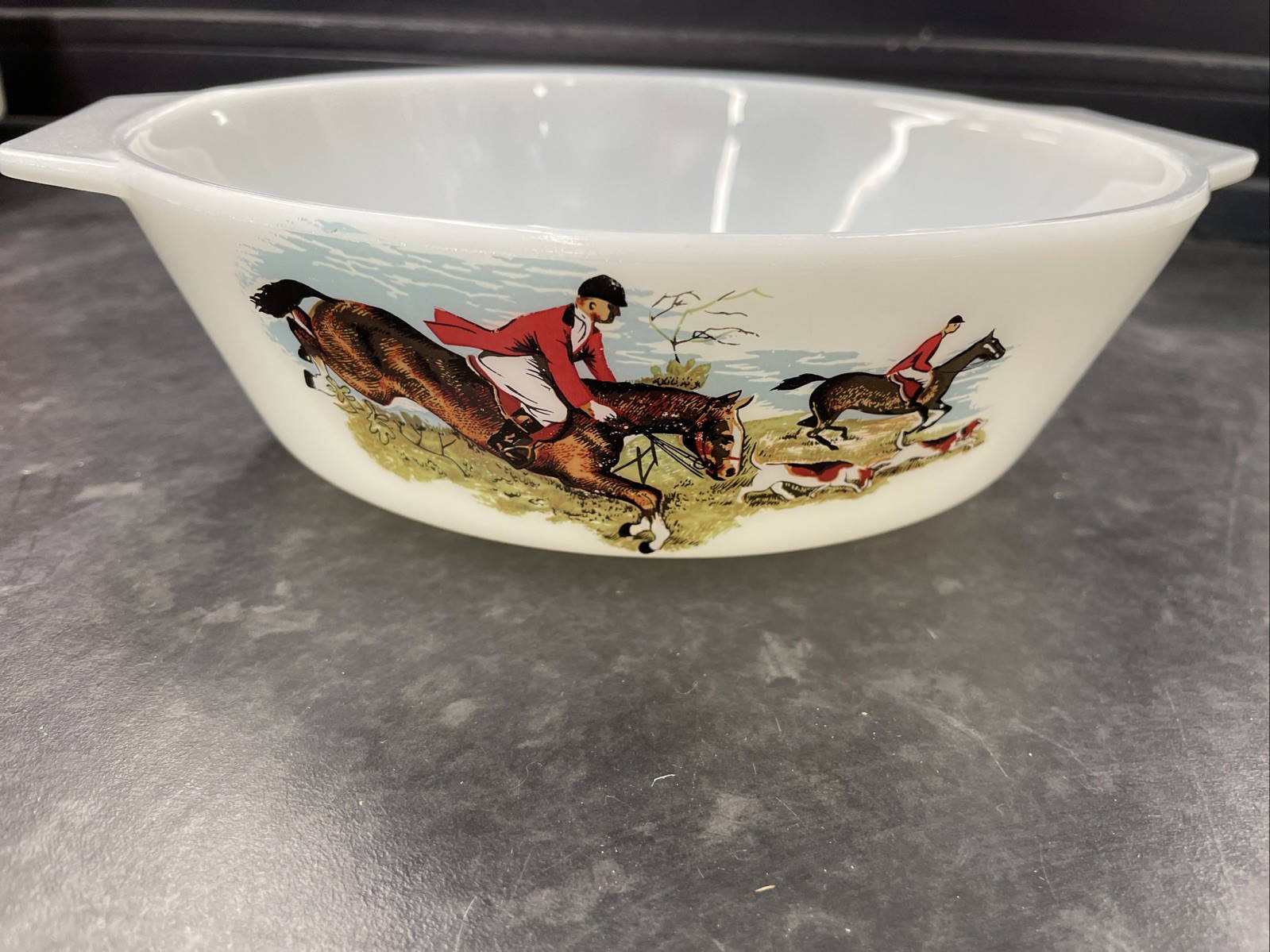 Vintage JAJ Pyrex Tally Ho Casserole Dish 22cm Made for Ringtons Tea company.
